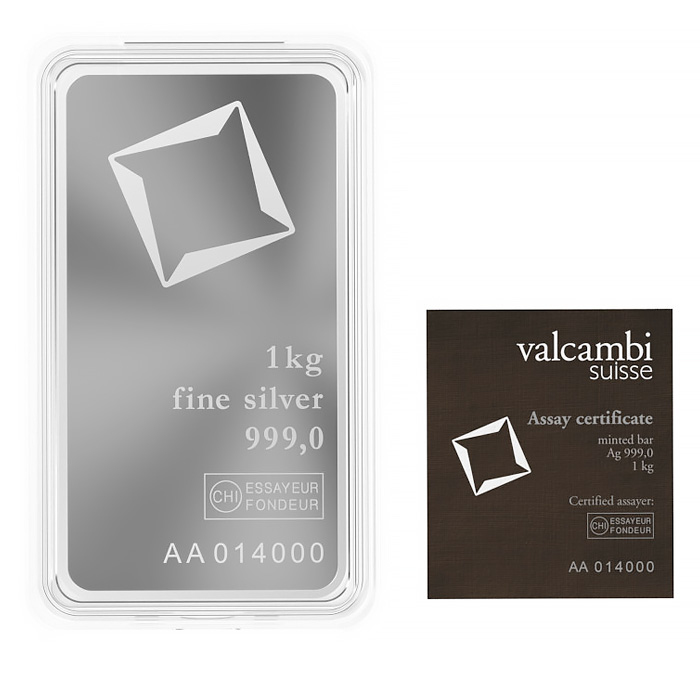 Švýcarské slitky, ražené z nejčistšího 99,9% stříbra, certifikované společnostmi ESG Edelmetall-Service GmbH & Co. KG v úzké spolupráci s rafinérií Valcambi SA, odpovídají londýnskému standardu Good Delivery (LBMA) a jsou proto bez problémů akceptovány na všech trzích. Ražené stříbrné slitky jsou dodávány v plastové ochranné kapsli spolu s papírovým certifikátem pravosti. Svrchní strana slitku obsahuje údaje o ryzosti a váze, logo rafinérie a sériové číslo. Zadní strana slitku nese znak rafinerie Valcambi.